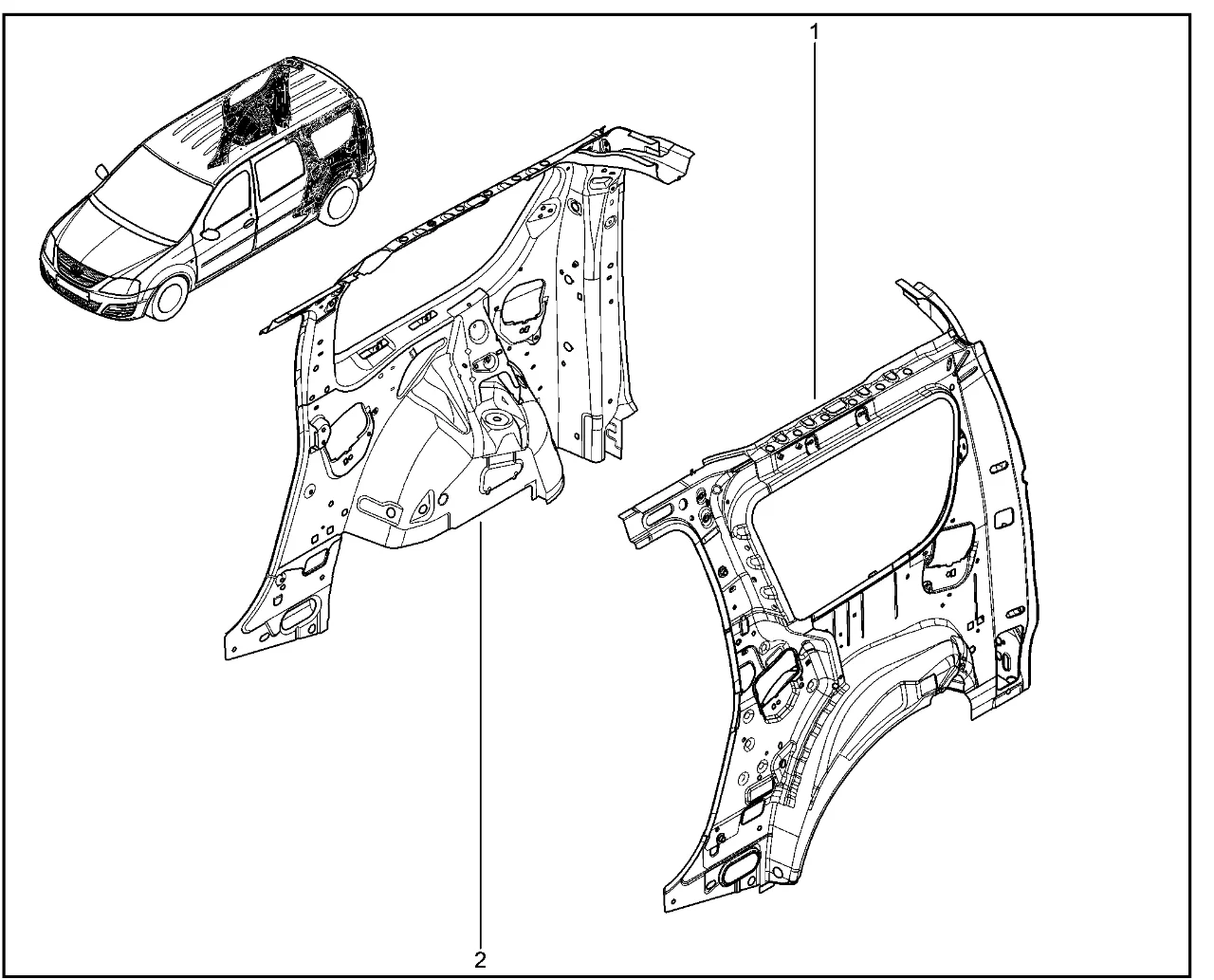 | 1 | Накладка (усилитель) задней стойки кузова левая в сборе (фургон) | 766319910R | |