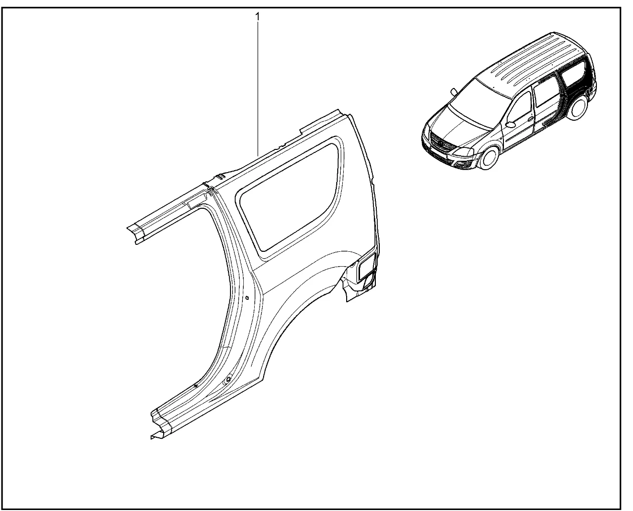 | 1 | Боковина кузова задняя левая (фургон) | 6001548806 | |