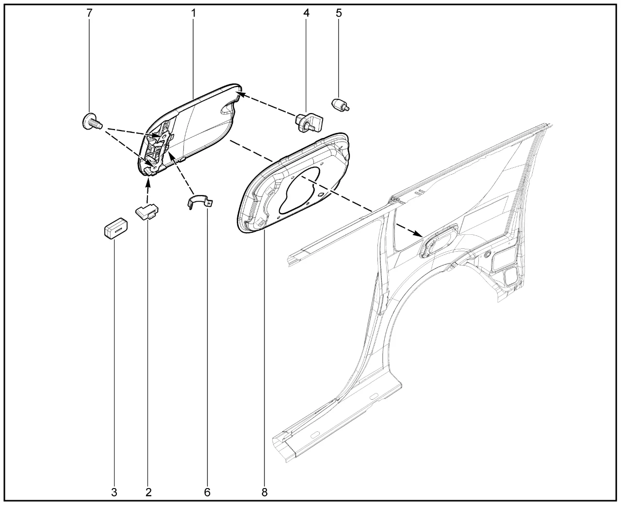 | 8 | Рамка люка наливной горловины топливного бака в сборе (E-Largus) | 8460017239 |