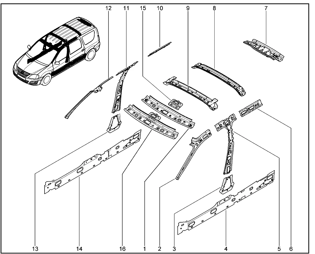 | 8 | Поперечина крыши средняя в сборе | 6001548810 | |