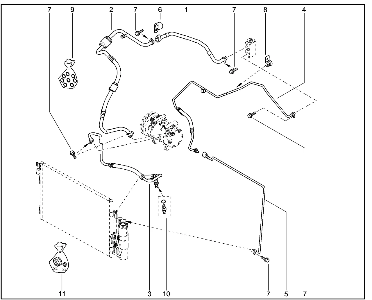 | 5 | Трубка между конденсатором и расширительным клапаном | 924404434R | |