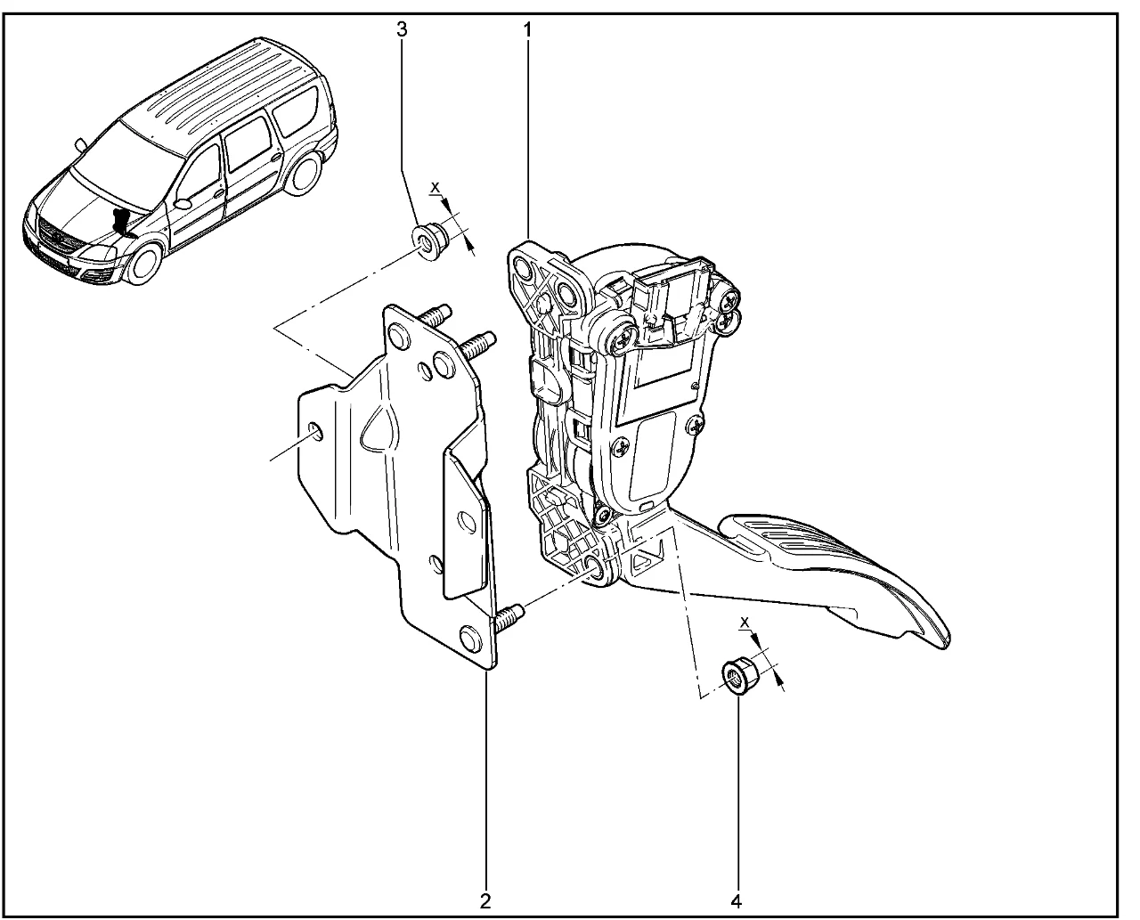 | 2 | Кронштейн педали акселератора | 673256988R | |