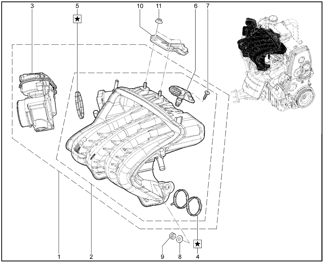 | 1 | Модуль впуска с патрубком дроссельным в сборе | 11189100860000 | 8450051875 |
