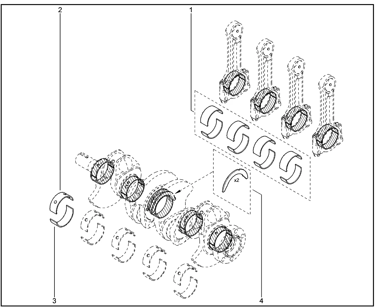 | 2 | Вкладыш коленвала верхний с вырезом (желтый)(толщина 1,952) | 122156982R | |