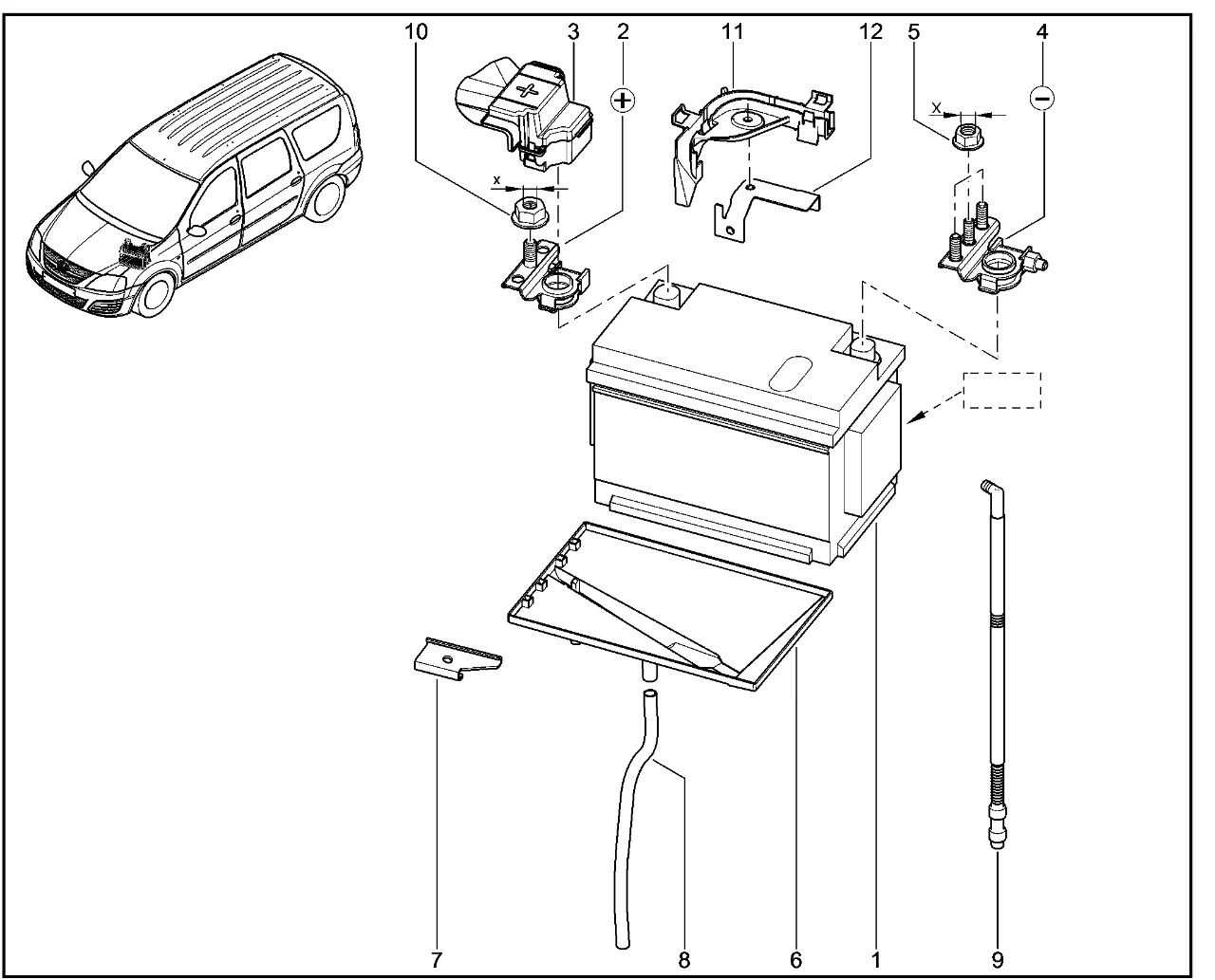 | 7 | Планка крепления АКБ в сборе | 244382477R | |