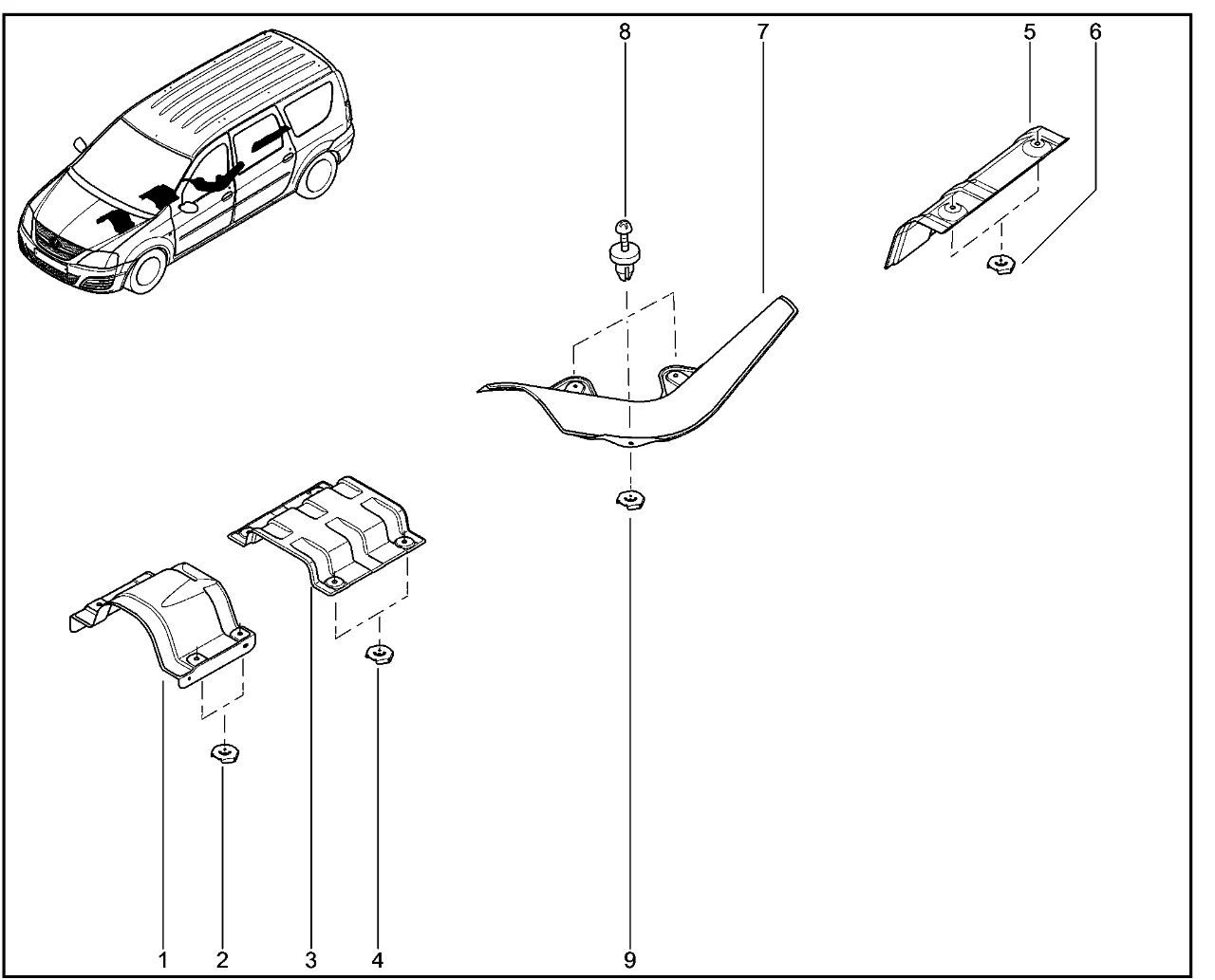 | 3 | Экран термоизоляционный глушителя | 6001547678 | |