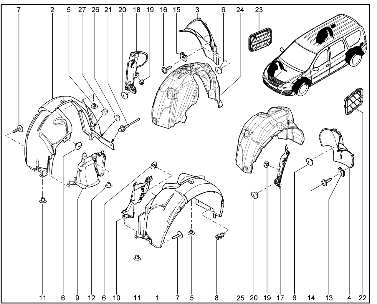| 9 | ЩИТОК ПЕРЕДНЕЙ ПРАВОЙ АРКИ КОЛЕСА БОКОВОЙ | 6001549272 | |