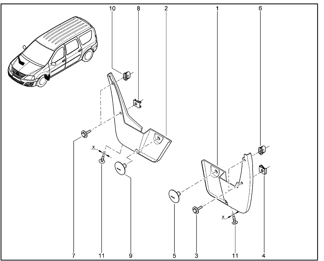 | 2 | ФАРТУК ПЕРЕДНЕГО КОЛЕСА ПРАВЫЙ | 638505207R | |