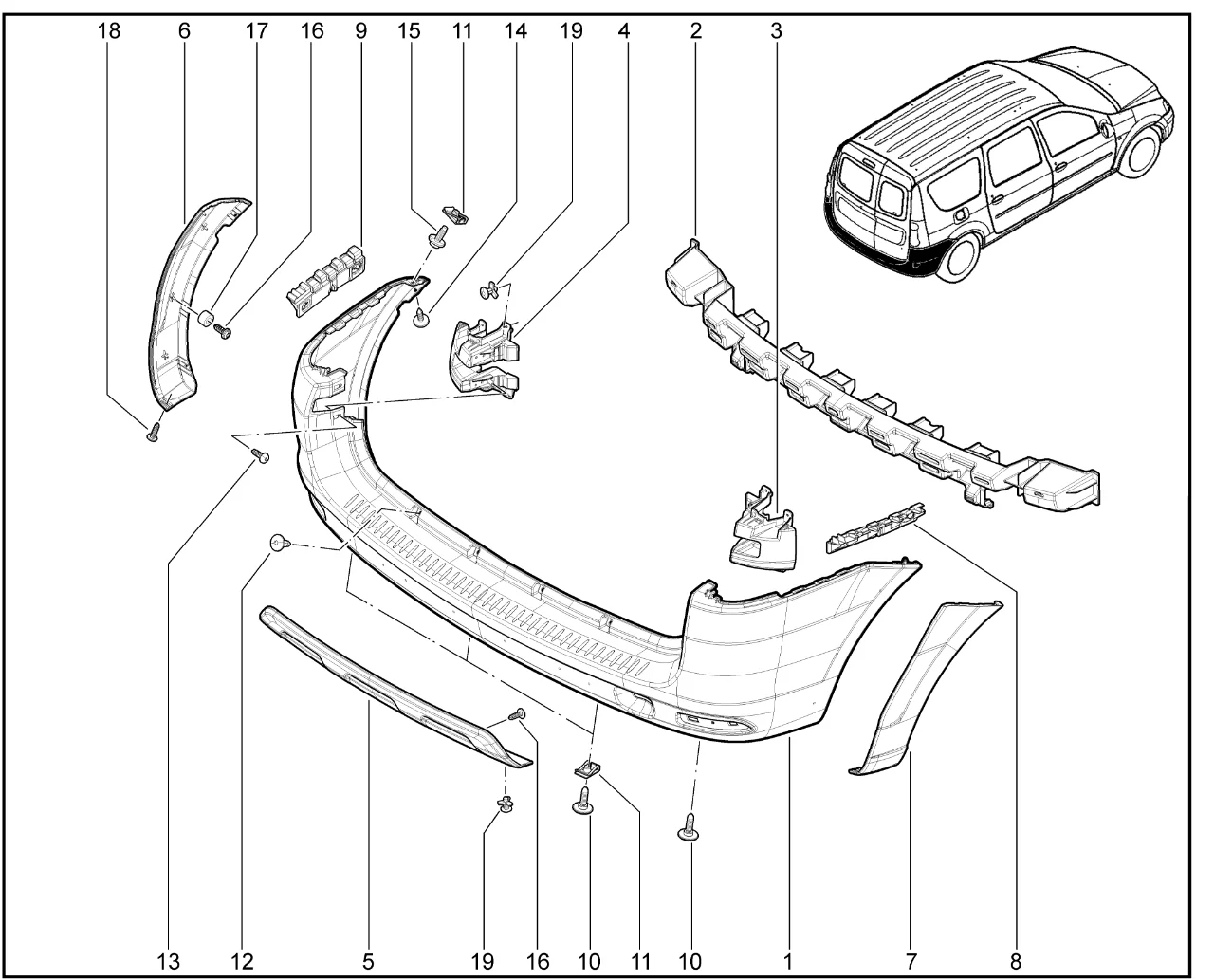 | 8 | КРОНШТЕЙН ЗАДНЕГО БАМПЕРА ПРАВЫЙ | 8200846262 | |