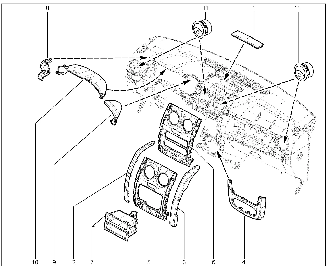 | 6 | Облицовка панели приборов центральная | 682604132R | |