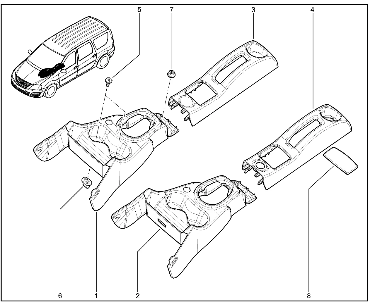 | 8 | Заглушка рычага стояночного тормоза | 8200362601 |
