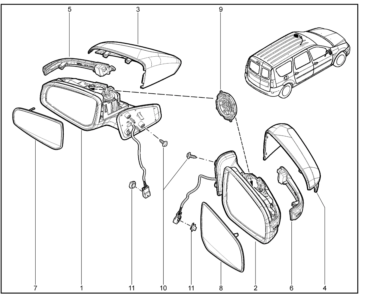 | 7 | Рамка в сборе с зеркальным элементом левая | 8460013718 | |