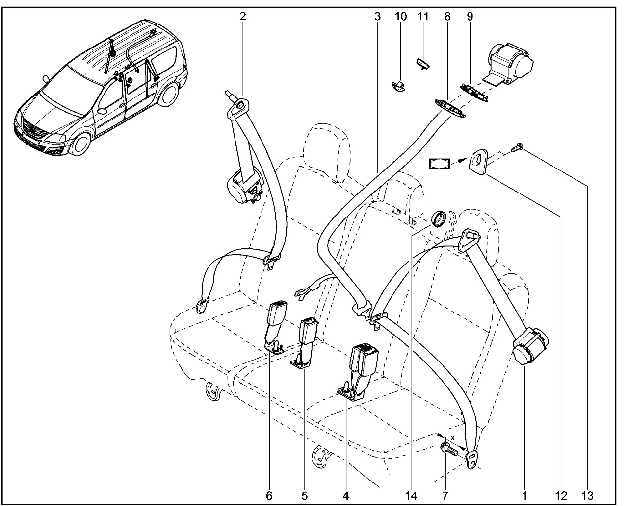 | 2 | Ремень безопасности 2 ряда правый | 6001549671 | |