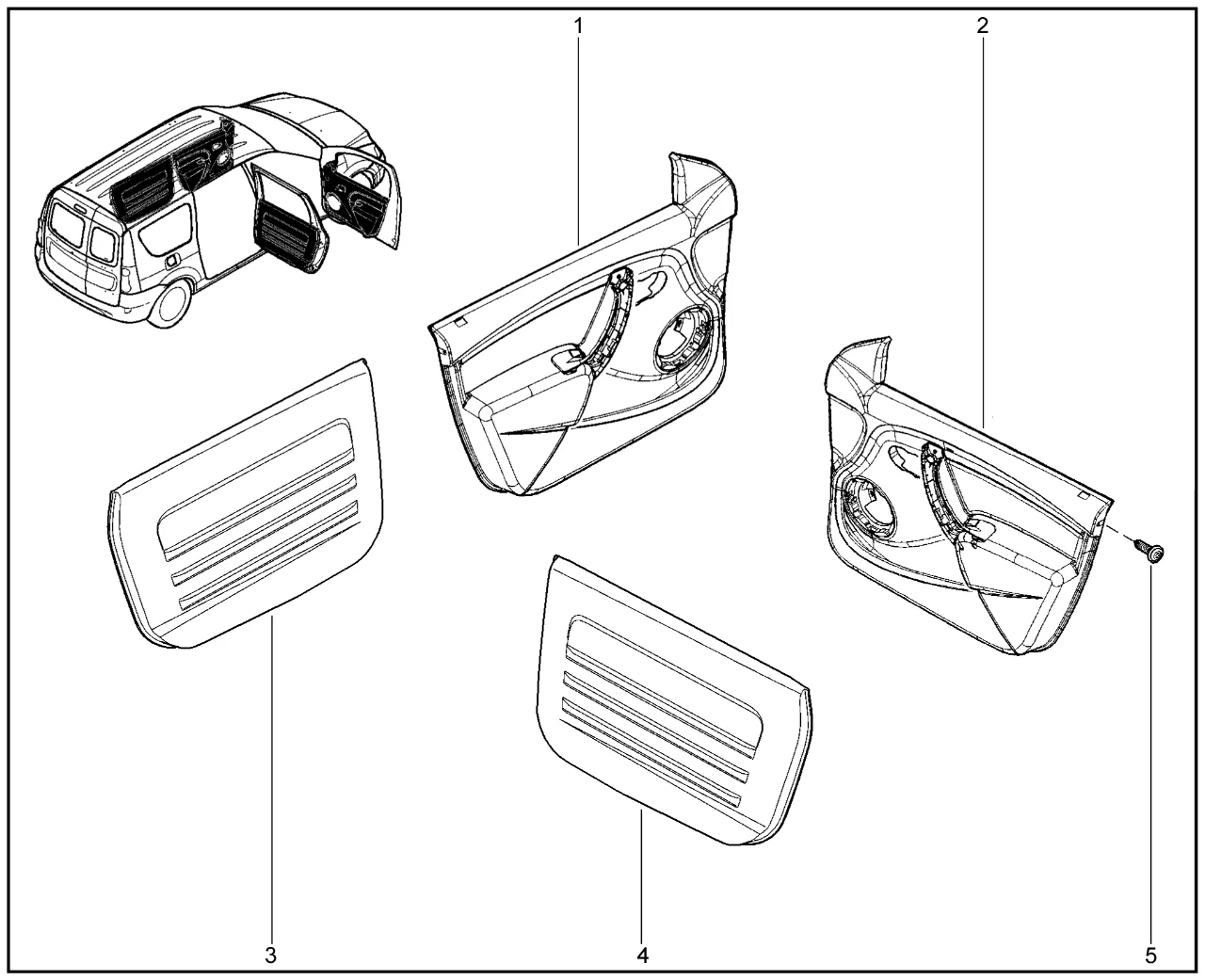 | 4 | Обивка задней правой двери | 8450094194 |
