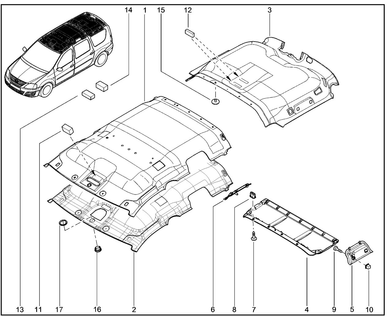 | 3 | Обивка крыши задняя | 8200820374 | |