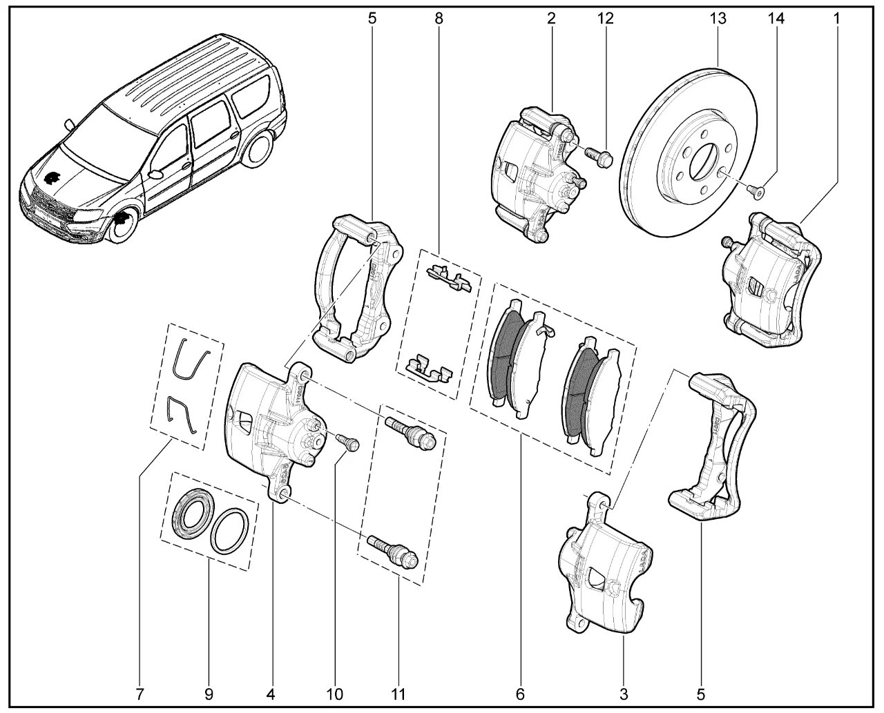 | 7 | Комплект пружин колодок переднего тормоза | 8460013699 | |