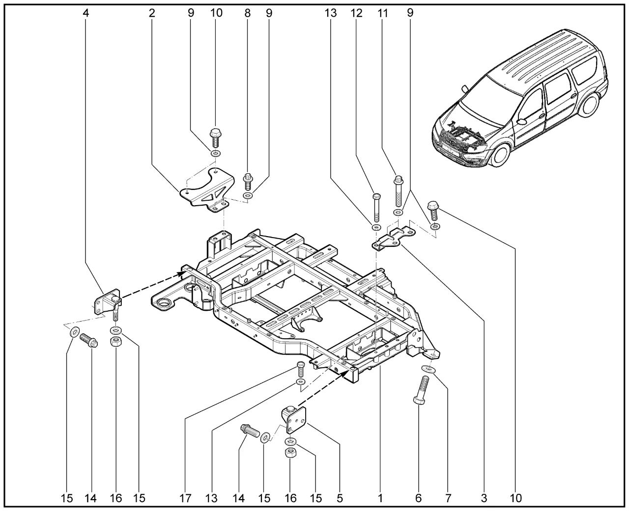 | 1 | Подрамник с кронштейнами в сборе | 8460017227 | |