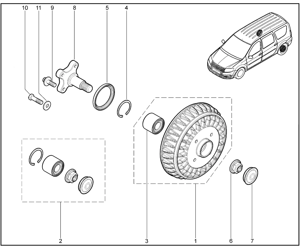| 3 | Подшипник ступицы заднего колеса | 8200639543 | |