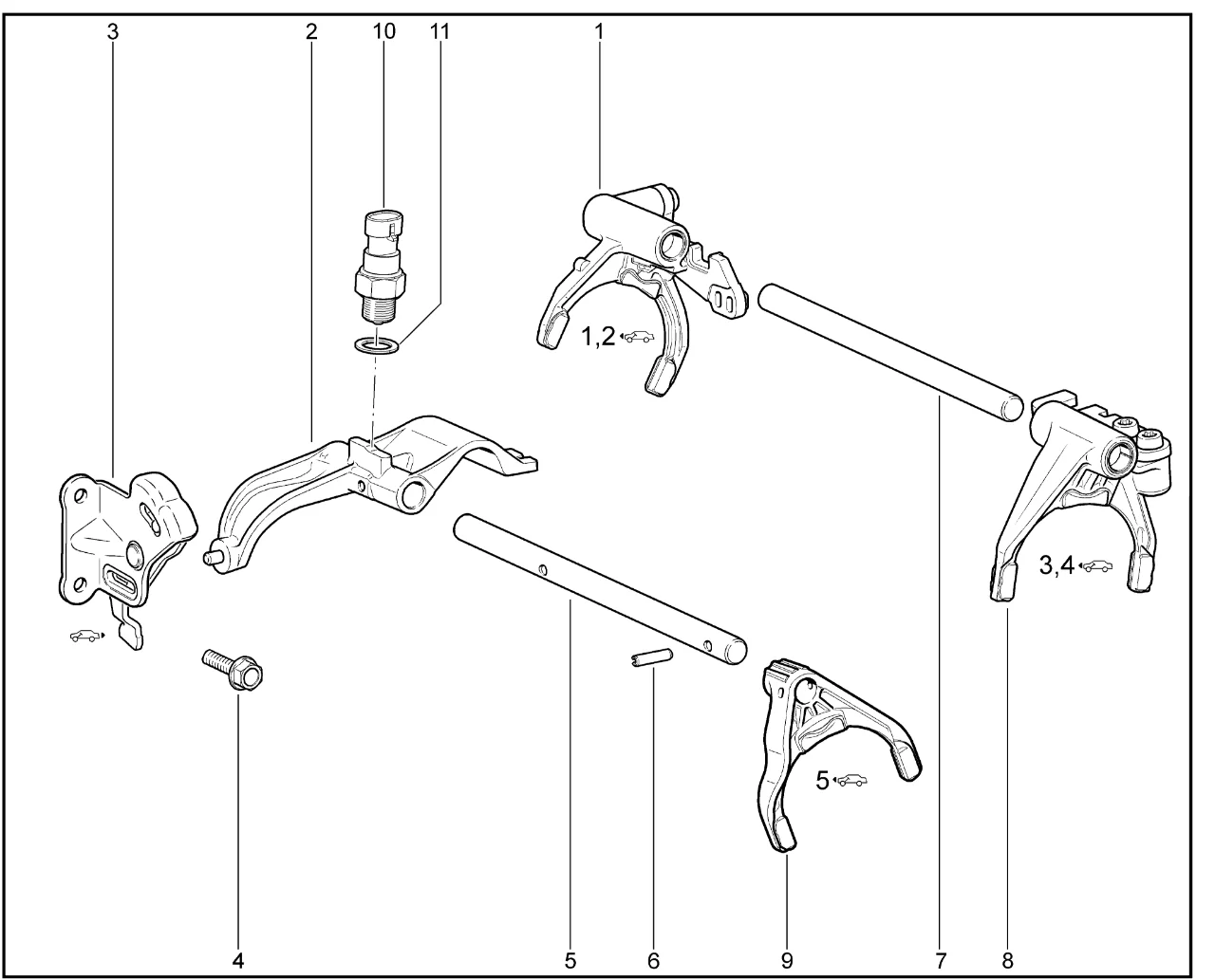 | 7 | Шток вилок переключения передач | 21810170206100 | 8450076004 |