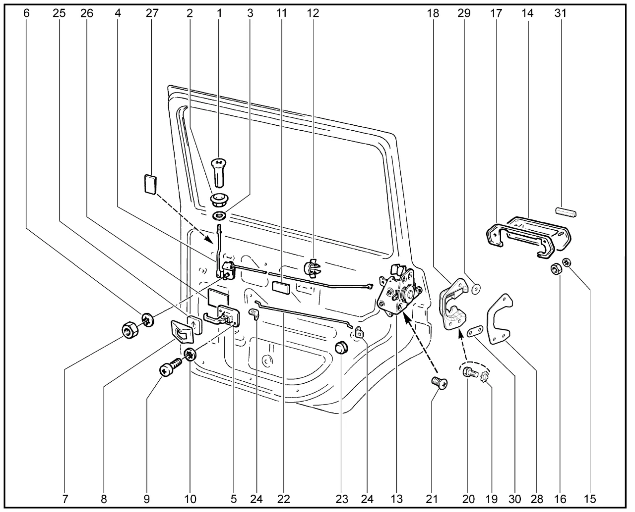 | 13 | Замок задней левой двери с внутренней ручкой в сборе | 21310620500900 | 8450083211 |