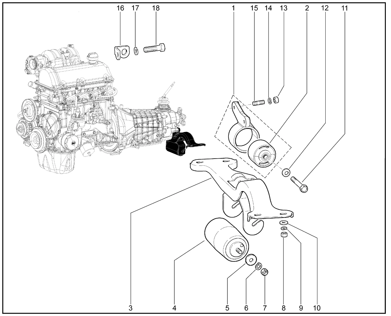 | 1 | Кронштейн задней опоры в сборе | 21213100104000 | 8450082674 |