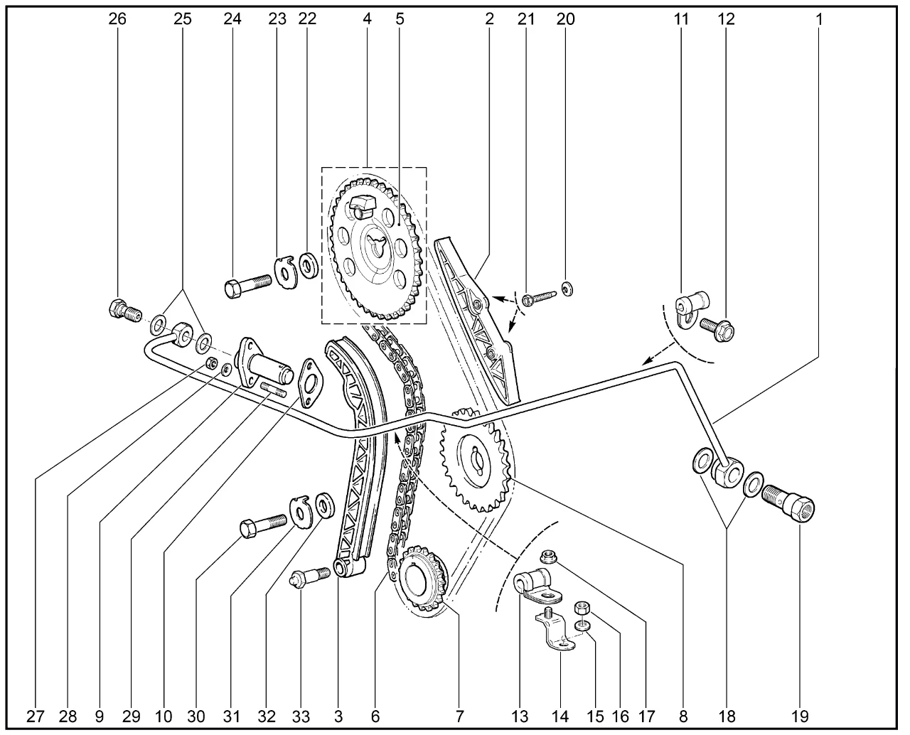 | 33 | Болт крепления башмака натяжителя цепи | 21010100609800 | 8450078574 |