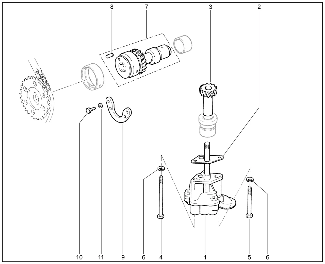 | 7 | Валик привода масляного насоса в сборе | 21214101123500 | 8450079037 |