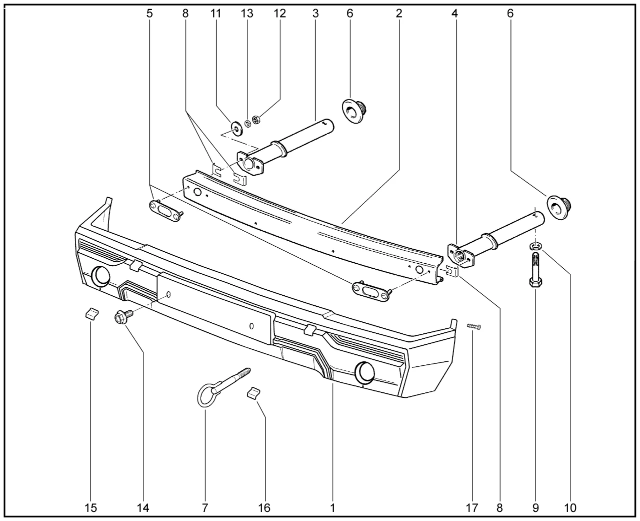 | 1 | Бампер передний в сборе | 21218280301030 | 8460006909 |