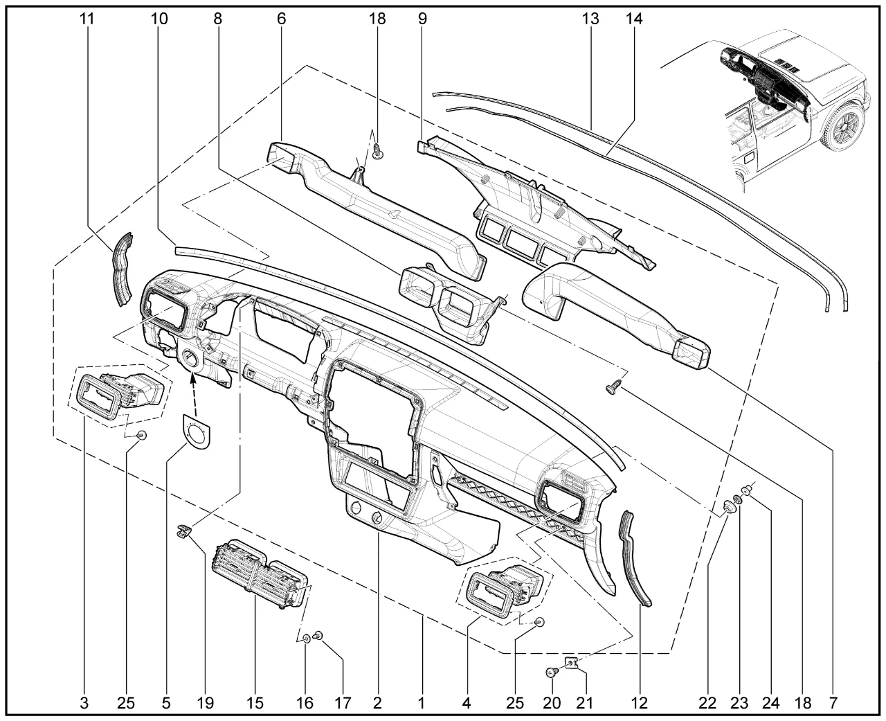 | 2 | Панель приборов с воздуховодом | 8450087723 | |