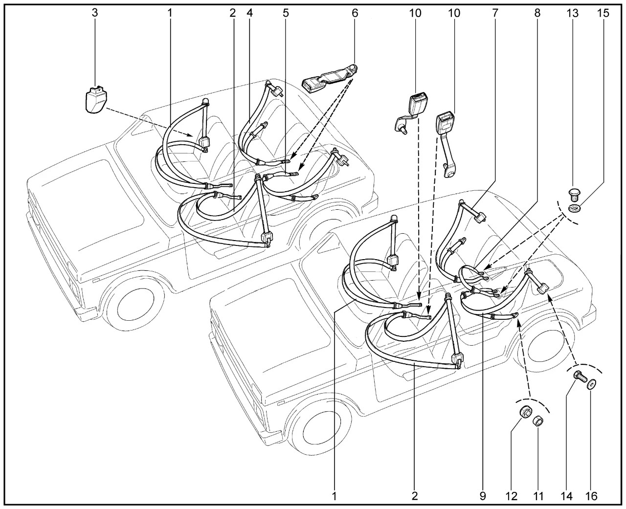 | 2 | Ремень безопасности передний левый (комплект) | 21214821701110 | 8450058305 |