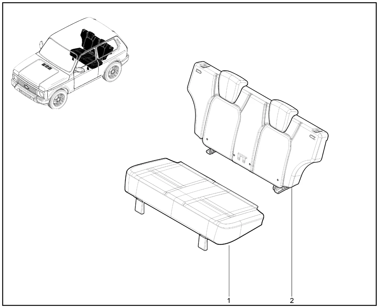 | 2 | Спинка заднего сиденья в сборе | 21214682021011 | 8450075293 |