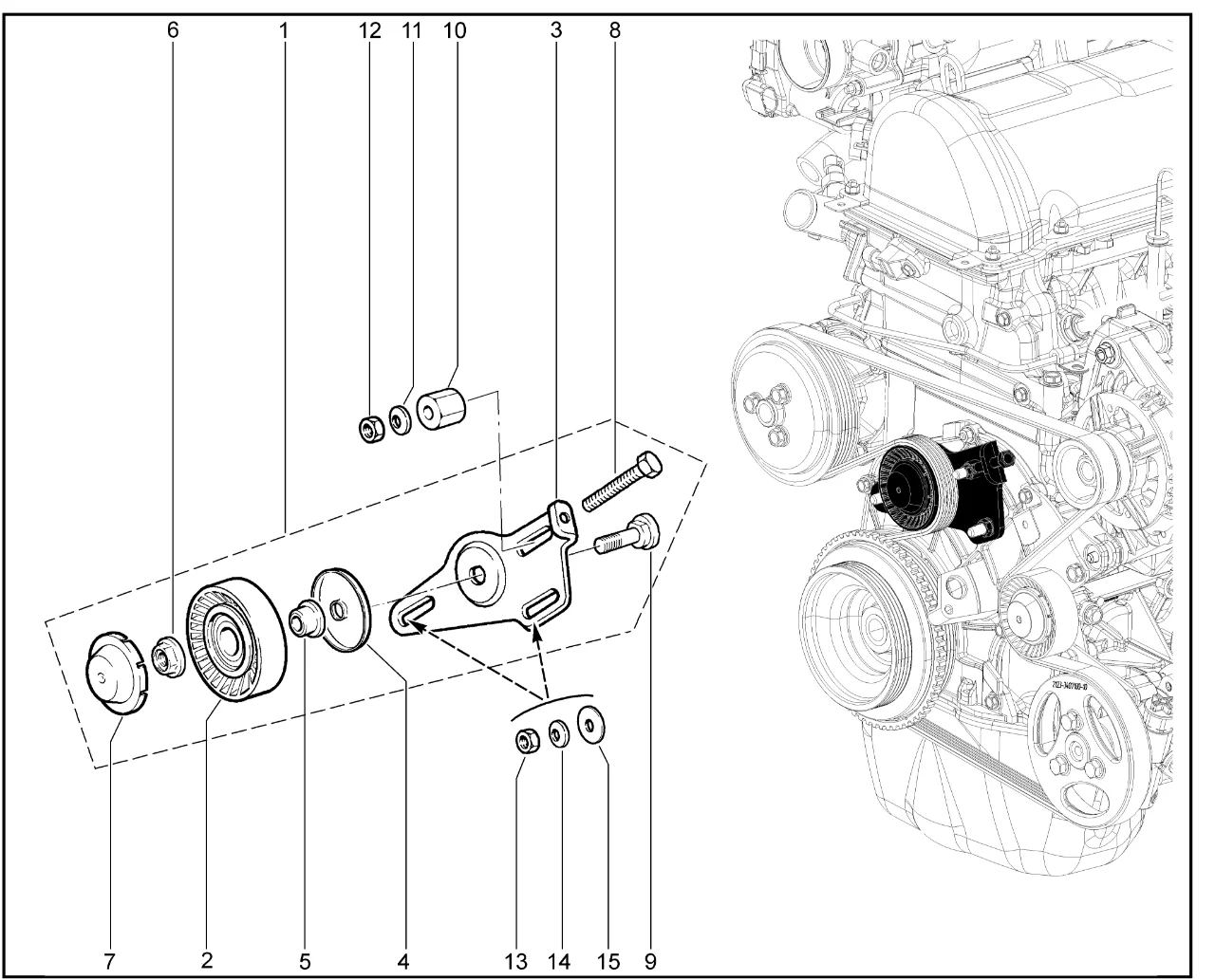 | 3 | Кронштейн механизма натяжения ремня | 21230104105220 | 8450058386 |