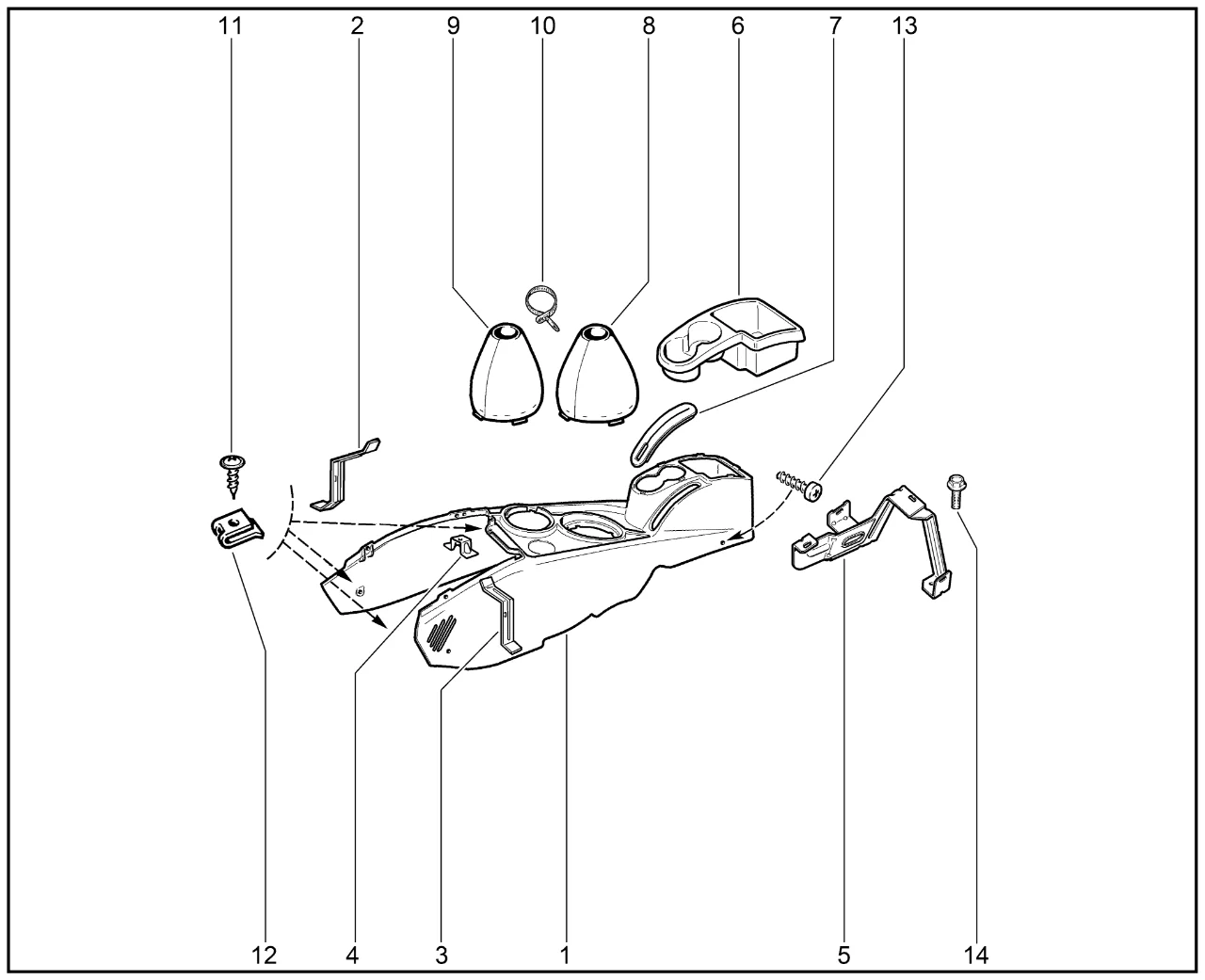 | 2 | Кронштейн облицовки туннеля пола передний правый | 21230510911400 | 8450058719 |