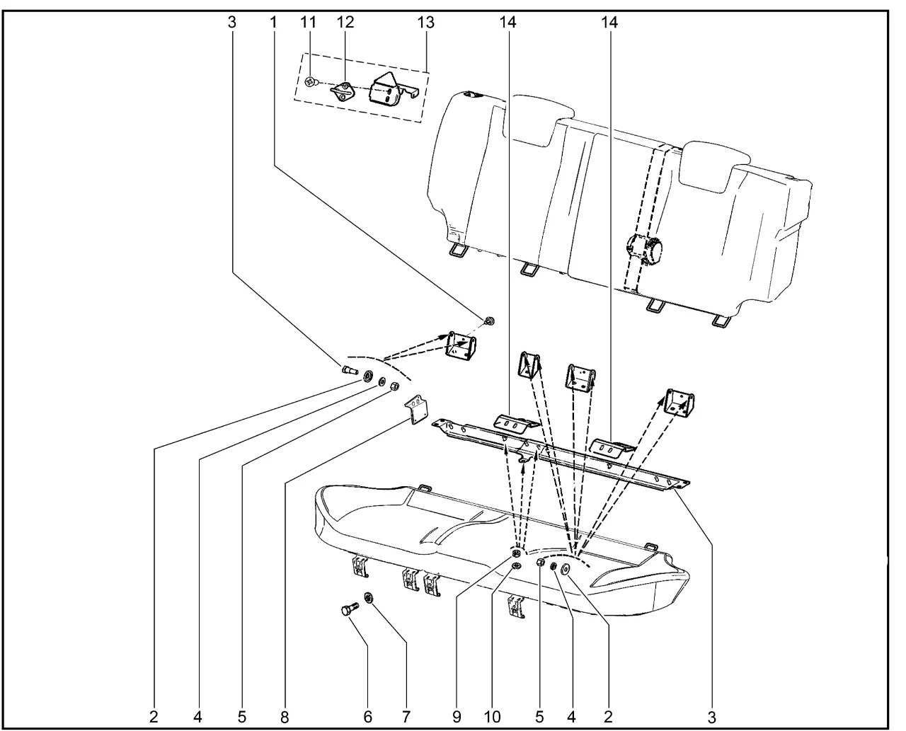 | 12 | Фиксатор замка спинки заднего сиденья с оболочкой в сборе | 11180682409000 | 8450001828 |