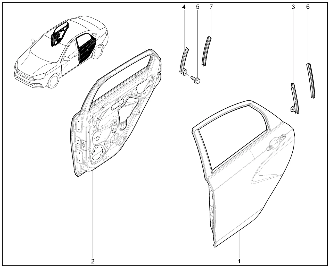 | 7 | Направляющая стекла задней правой двери (AURA) | 8450045001 |