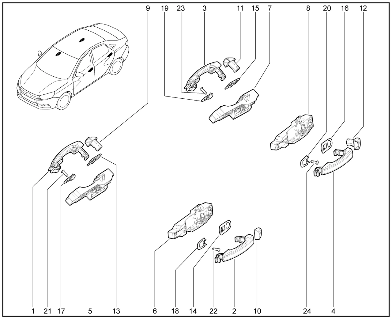 | 2 | Ручка наружная передней двери левая (под окраску) | 8450039475 | |