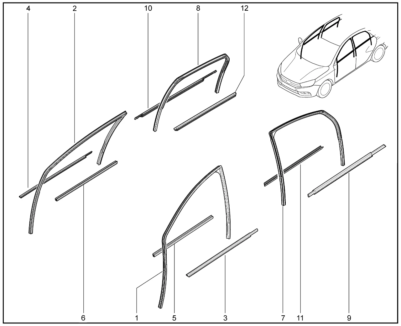 | 12 | УПЛОТНИТЕЛЬ ОПУСКНОГО СТЕКЛА ЗАДНЕЙ ПРАВОЙ ДВЕРИ ГОРИЗОНТАЛЬНЫЙ ВНУТРЕННИЙ | 8450044944 |