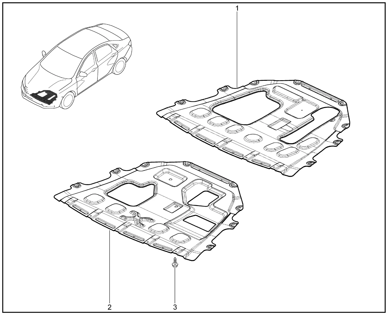 | 2 | Брызговик двигателя (для а/м с вариатором) | 8450043809 | |