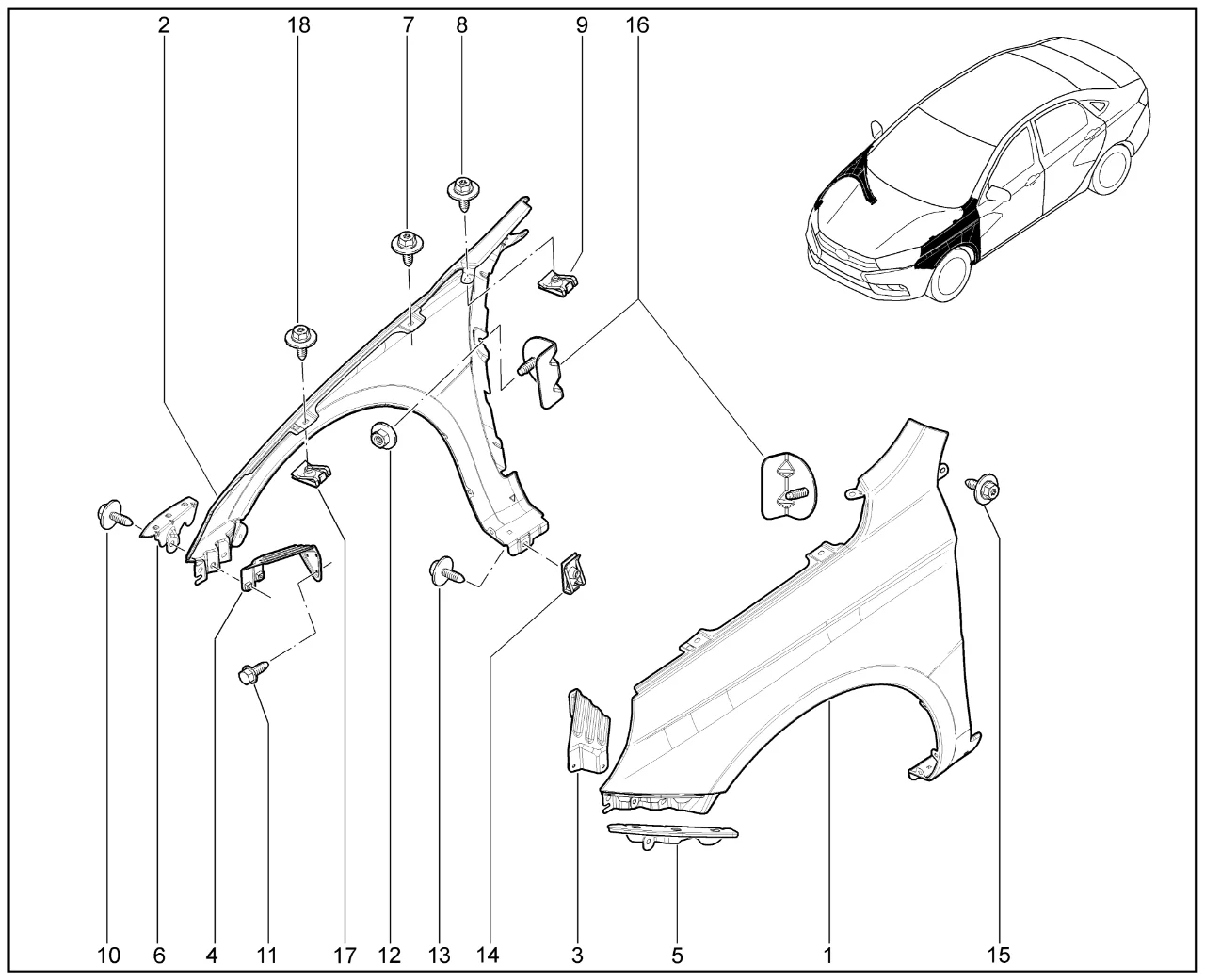 | 16 | Кронштейн крепления переднего крыла задний в сборе | 8450008191 |