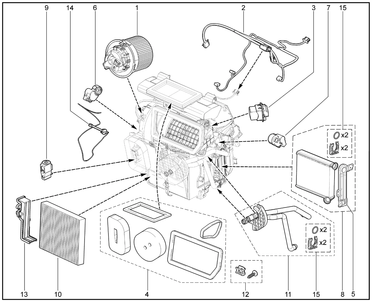 | 15 | Комплект фиксации трубки радиатора (2 клипсы, 2 кольца) | 8460019011 |