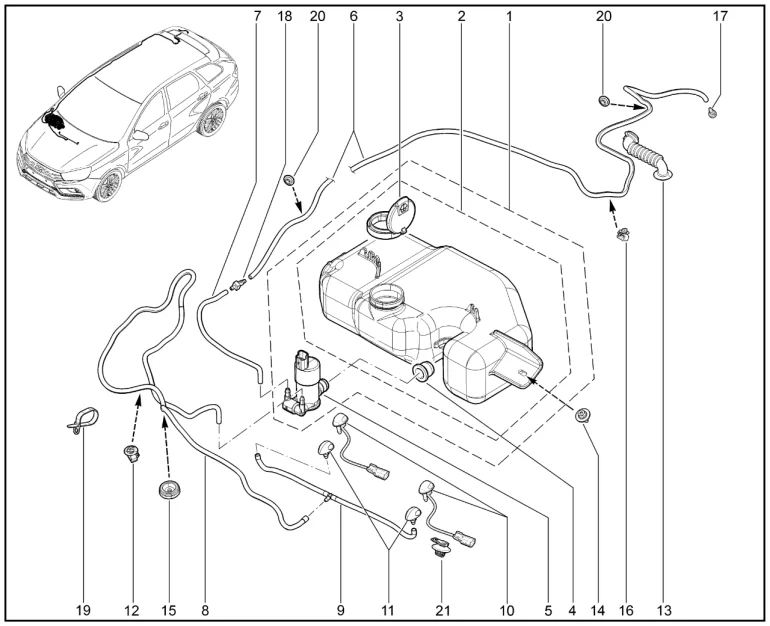 | 2 | Бачок омывателя ветрового стекла с крышкой и уплотнителем | 8450008574 | |