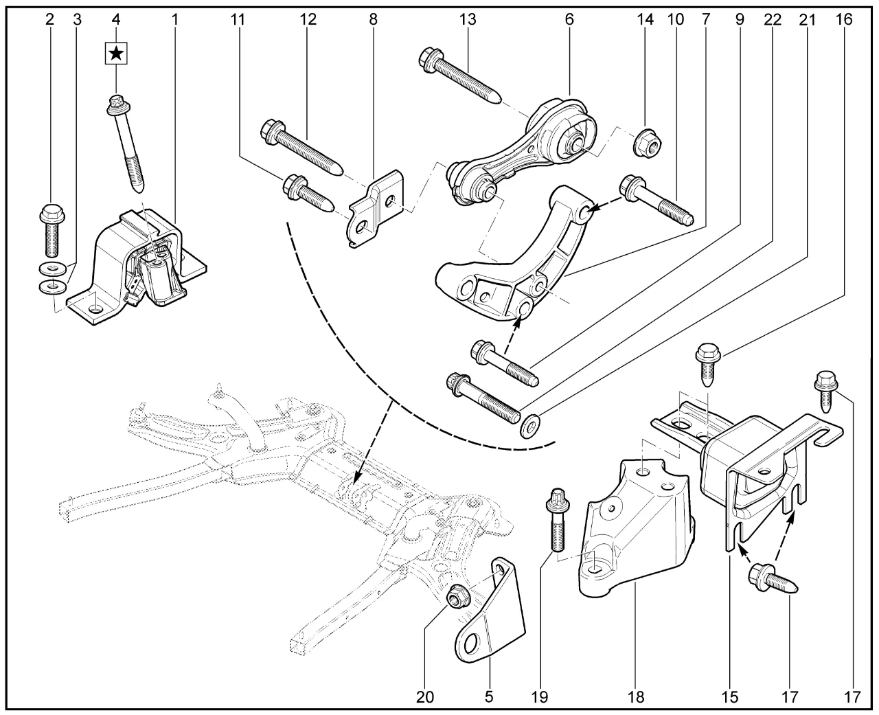 | 17 | Болт M10х1,5 крепления опоры подвески двигателя | 7703602230 | |