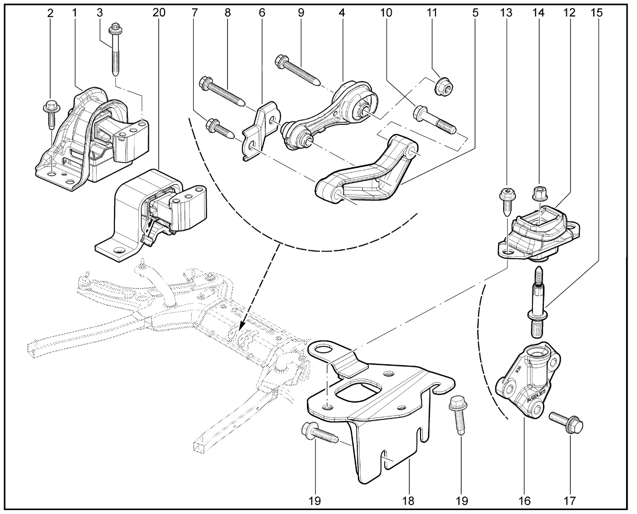 | 12 | Опора передняя левая для крепления двигателя к кузову | 8200395661 | |