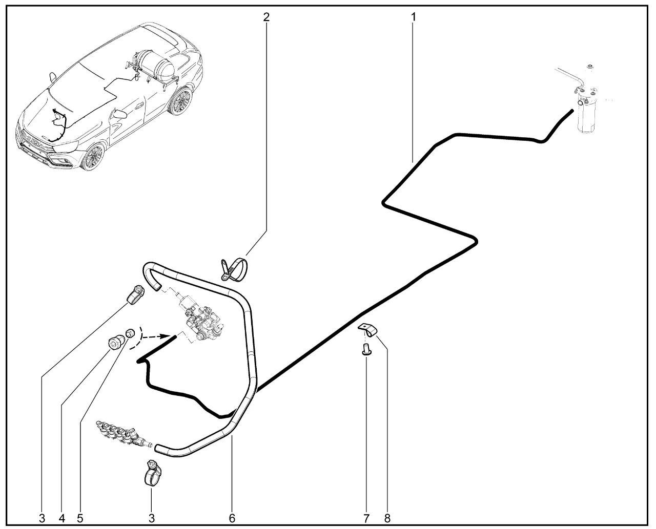 | 6 | Шланг от редуктора к рампе | 8450038142 | |