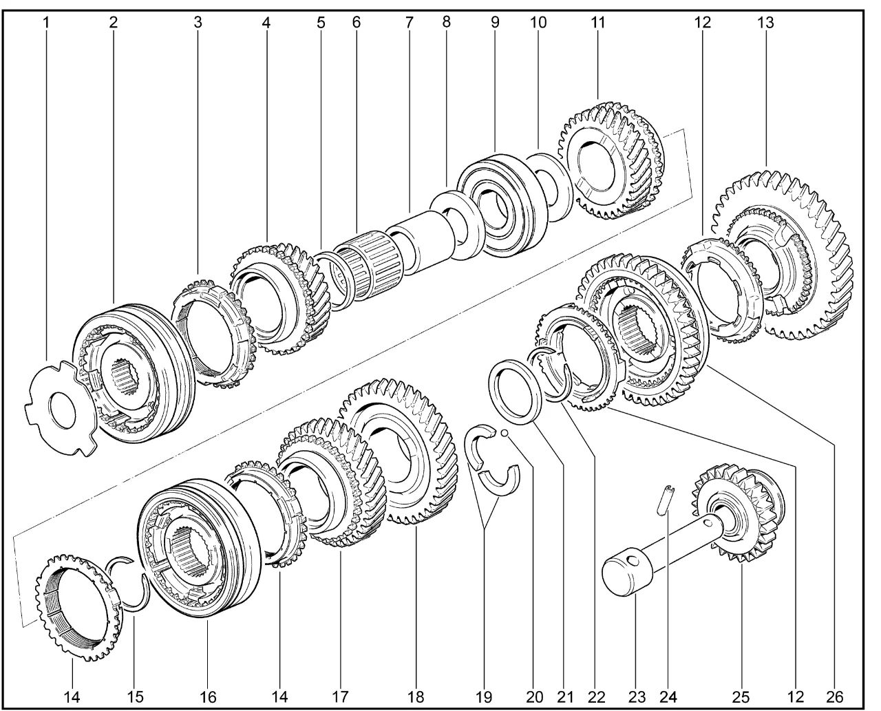 | 26 | Синхронизатор 1-й и 2-й передач | 21800170111000 | 8450036521 |