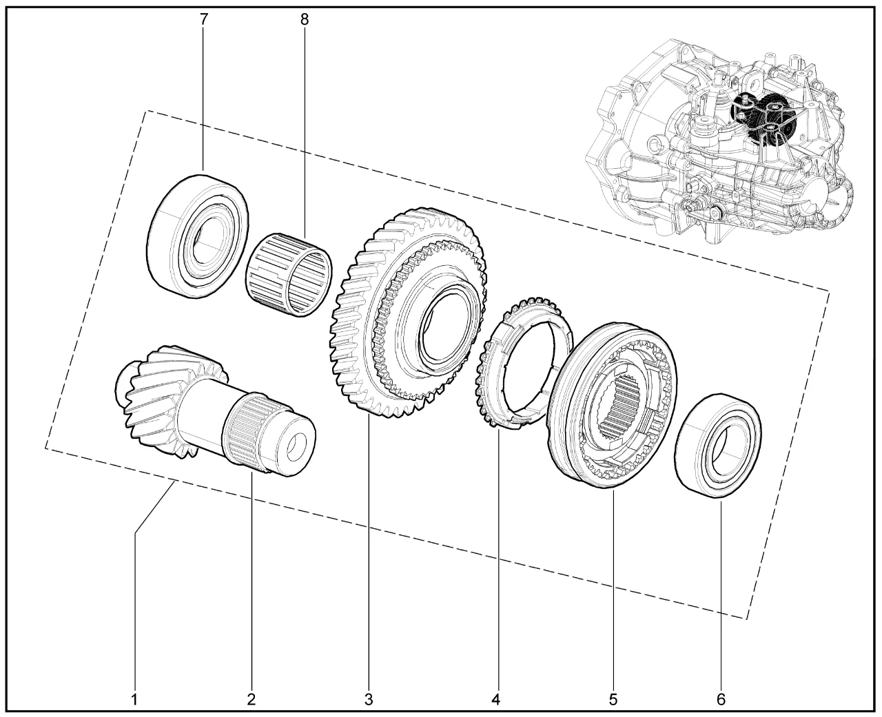 | 1 | Вал с шестернёй задней хода в сборе | 8460016332 | |