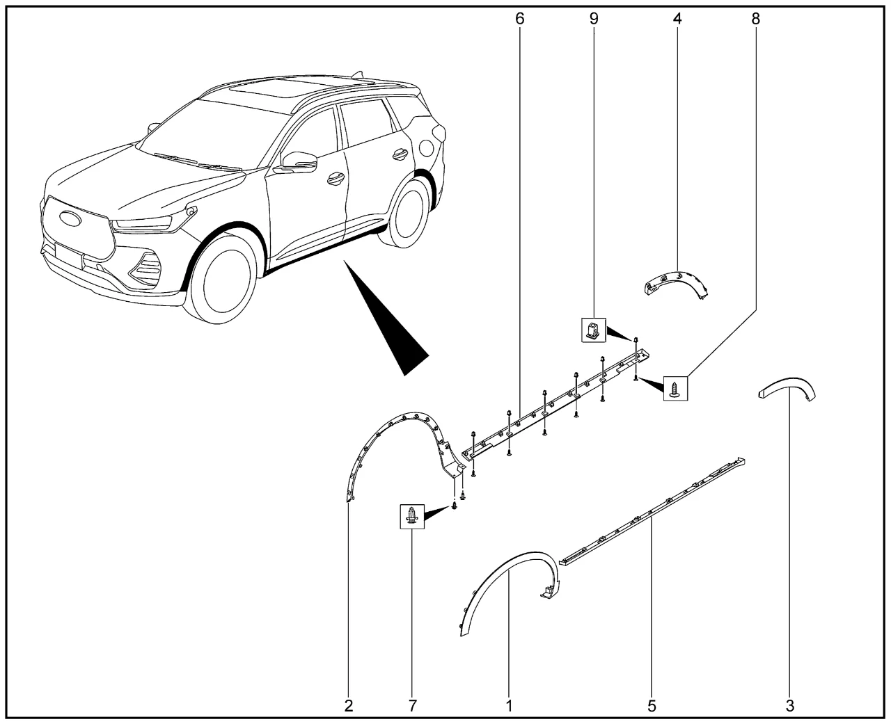| 4 | Накладка арки заднего колеса правая | 8460015014 | |