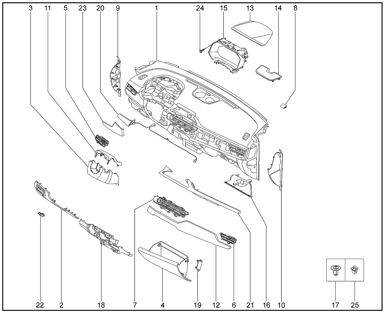 | 21 | Накладка панели приборов правая (Prestige) | 8460014756 | |