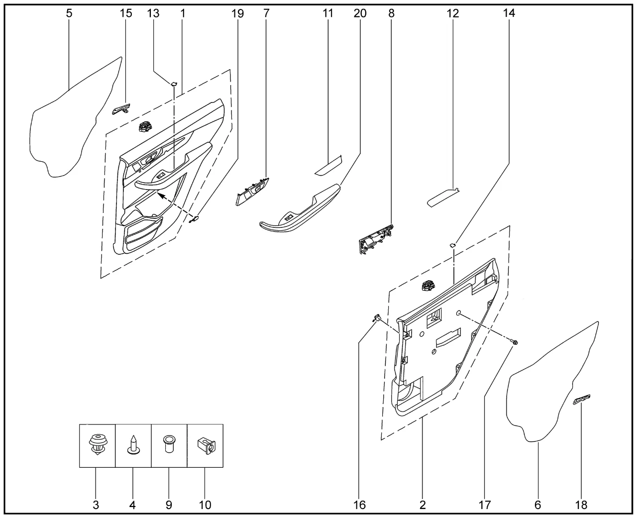 | 1 | Обивка задней правой двери с выключателем в сборе | 8460018024 | |