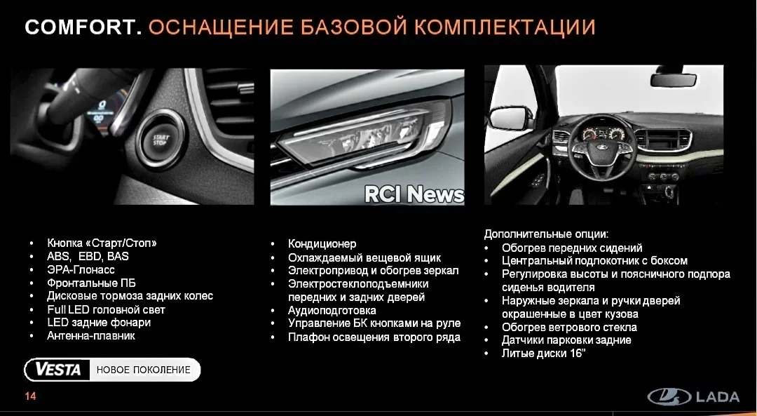 ![Оснащение базовой комплектации (COMFORT) Lada Vesta NG 2023 года]()